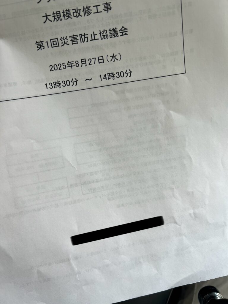 先日、秋物件災害防止協議会に行ってきました。大規模改修工事に伴う災害防止について、様々な業者の方と話し合いました。